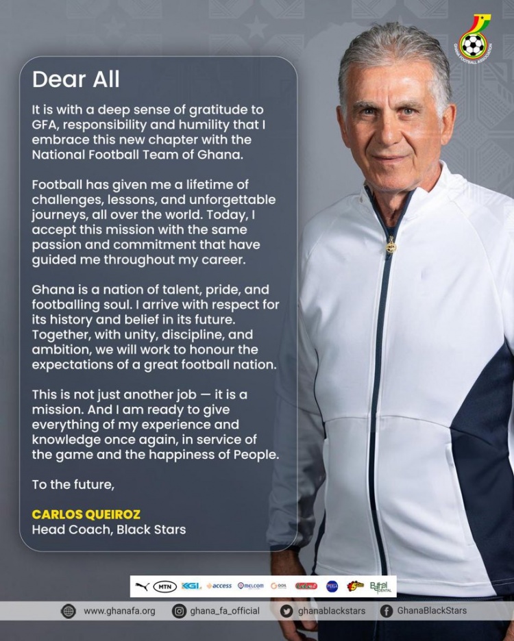 奎罗斯公开信:执教加纳不仅仅是另一份工作,而是一种使命,
